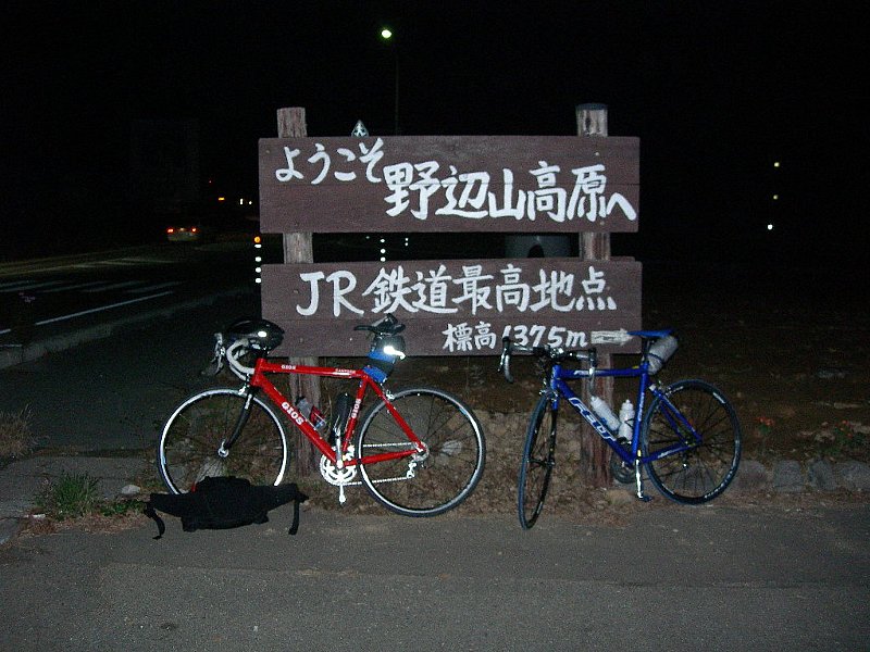 だいぶ足が回らなくなってきた頃、やっと野辺山に着きました。野辺山駅は JR鉄道の最高地点です。休憩も兼ねてパチリ。これが明るいうちなら、もっと雰囲気が違ったのにと思うと残念です。思うにこの付近は夏に来るとベストですね。高原だからきっと涼しいでしょうし、道も広いので比較的安心して走れます。川沿いの道も気持ちよさそうです。明るいうちなら高原の景色も楽しみながら、疲れ知らずで走れるんじゃないかなぁと思います。次は、絶対夏に来よう!と心に誓いました!