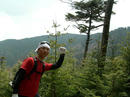 途中で下山中のおじさん3人組とすれ違いました。このおじさん達、装備がかなり本格的です。ごっつい靴にゲートル履き、大きなリュックにマグカップをぶら下げています。手には、鈴つきの杖。完璧な登山スタイルです。対して僕たちは、ペラペラのウィンドブレーカーにジャージ履き。とりあえずトレッキングシューズを履いてますが、その差は明らかです。心なしかおじさんたちに「なめんなよ」と言われているような気がします。