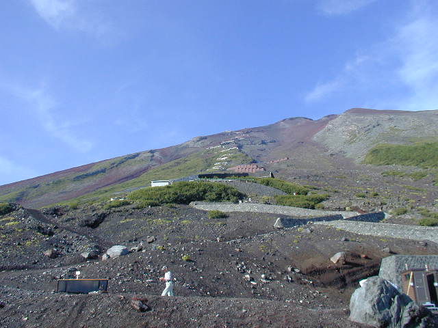そこからは、あっという間に5合目に到着。う~ん、すがすがしい。足元が見えるって大事ですね(当たり前か)それから、何とか5合目っていうのがいっぱいあって、どれがなんだかわからなくなってしまいました。