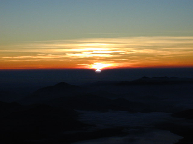 まだ6合目だというのにすでに雲の上。そして、雲の中から上ってくる日の出。