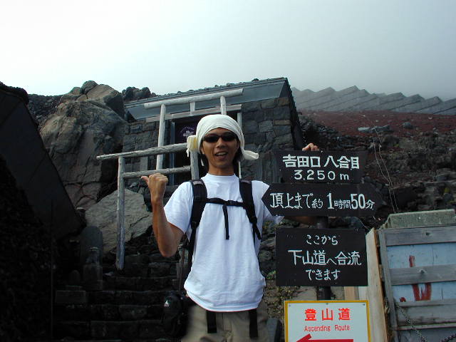 途中からは、元気な僕+N口班とちょっと疲れたI 田+S藤班の2組に分かれて行動しました。このN口くんというのが大変な体力バカで、見た目はえなりかずき風ですが、とにかく元気。昨日仕事してそのまま 車でここに来て、一睡もせずに富士山に登ってます。